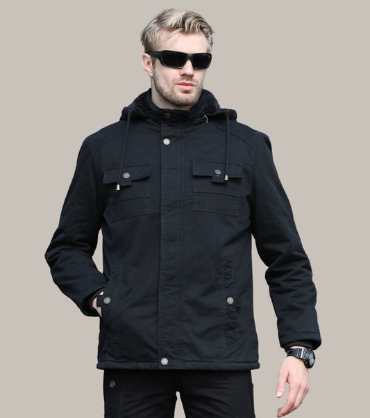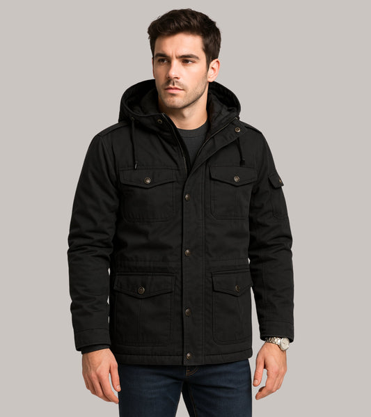 L'MONTE Men's Black Heavy-Duty Winter Cargo Jacket