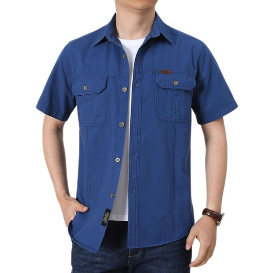 L'monte Men's Cargo Shirts Half Blue Sleeve shirts