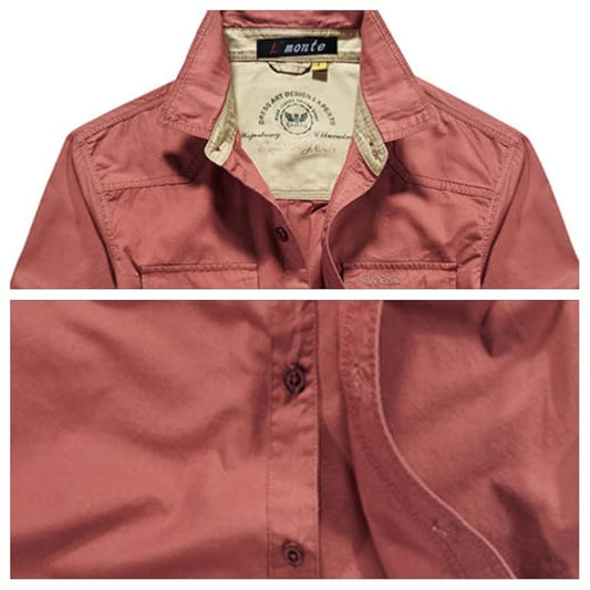 L'monte Men's Brick Red Cargo Shirts Half Sleeve with Pockets