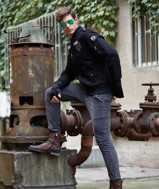 L'MONTE Men's Black Military-Style Bomber Jacket
