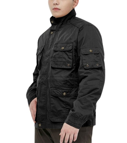 L'MONTE Men's Black Military Style Cargo Cotton Jacket