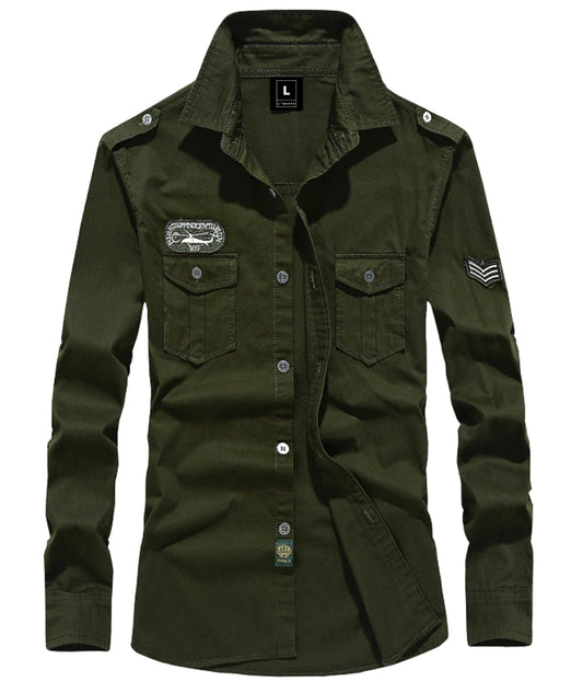 L'MONTE Men's Full Sleeves Green Cargo Shirts for Men