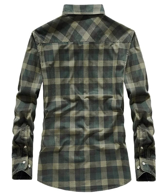 L'MONTE Men's Casual Checkered Green Shirts Full Sleeve