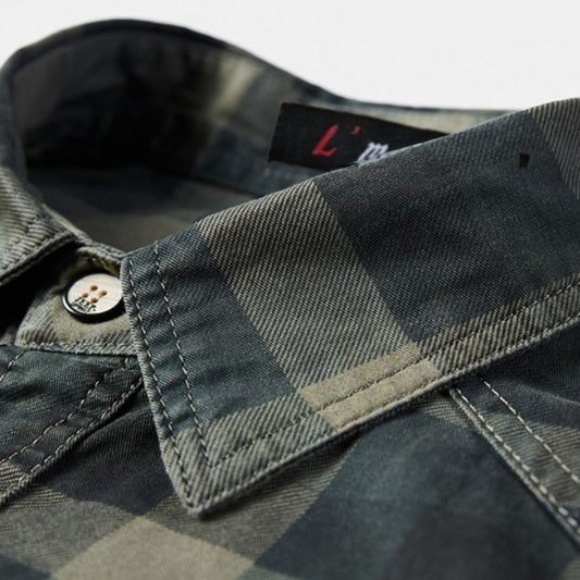 L'MONTE Men's Casual Checkered Khaki Shirts Full Sleeve