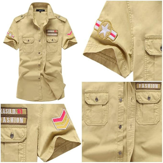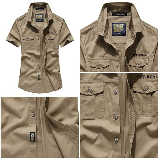 L'monte Men's Cargo Shirts Half Sleeve Khaki shirts