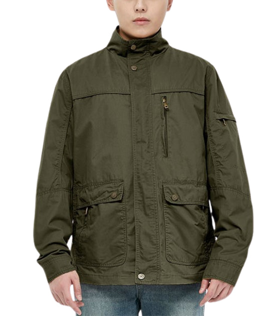 L'MONTE Men's Cotton Army Green Jacket For Mild Winter