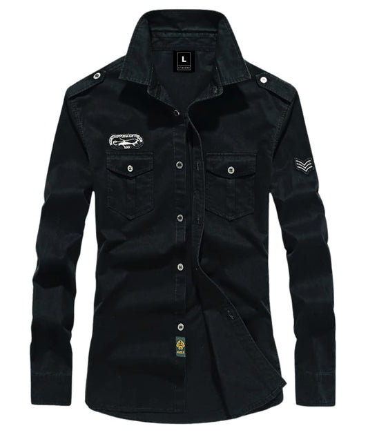 L'MONTE Men's Full Sleeves Black Cargo Shirts for Men