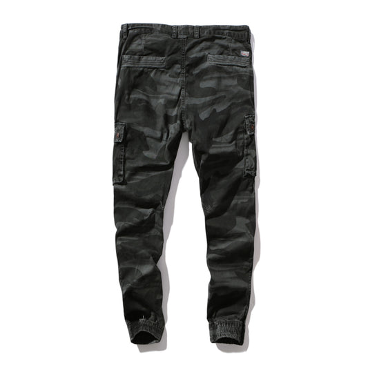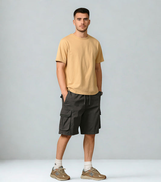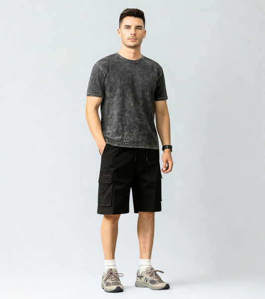 L'MONTE Men's Cotton Casual Black Elastic Waist Cargo Shorts