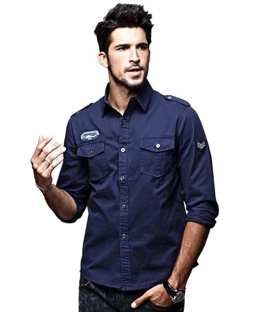 L'MONTE Men's Full Sleeves Blue Cargo Shirts for Men