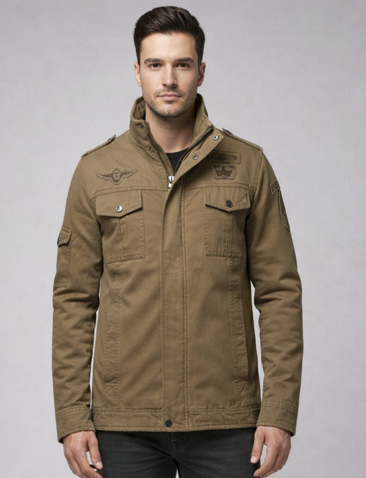 L'MONTE Men's Khaki Casual Bomber Jacket