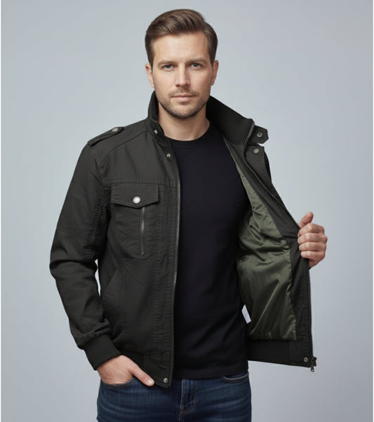 L'MONTE Men's Military-Style Black Cargo Jacket For Mild Winter