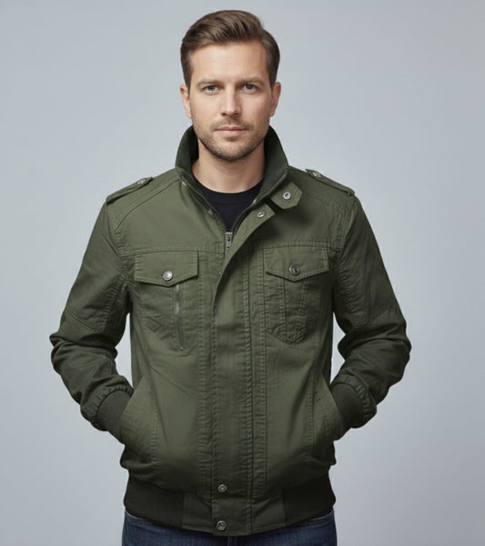 L'MONTE Men's Military-Style Army Green Cargo Jacket For Mild Winter