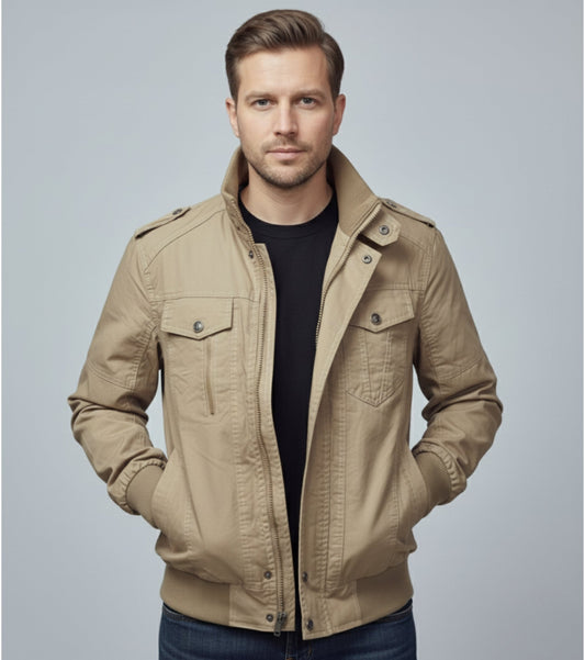 L'MONTE Men's Khaki Casual Bomber Jacket