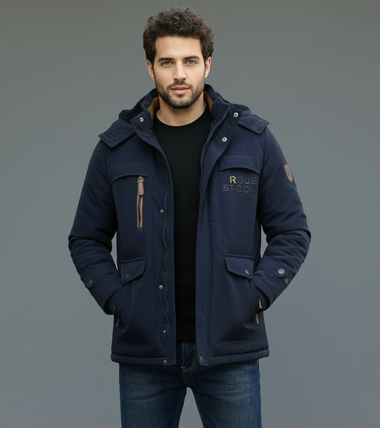 L'MONTE Men's Dark Blue Heavy-Duty Parka Jacket