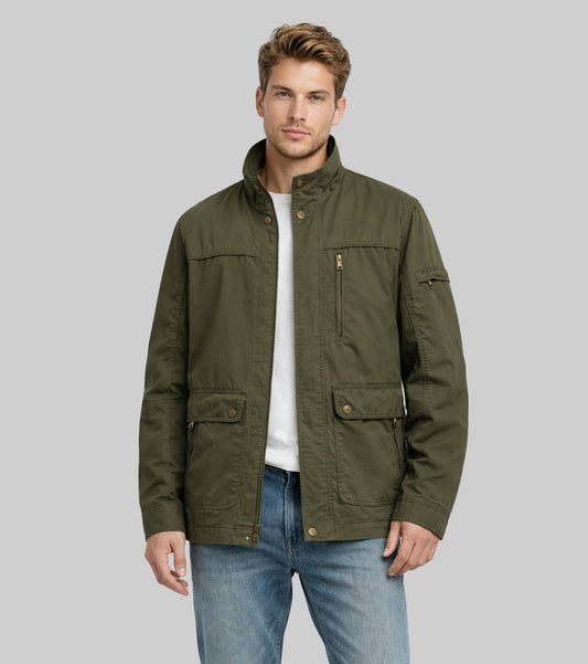 L'MONTE Men's Military-Style Khaki Cargo Jacket For Mild Winter