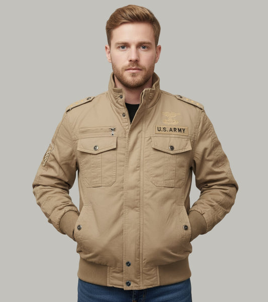 L'MONTE Men's Khaki Military-Style Bomber Jacket